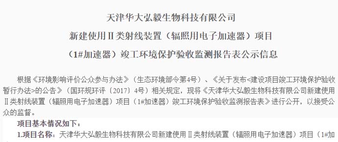 桂林華大生物科技有限公司使用電子加速器輻照項目 竣工環境保護驗收信息公示